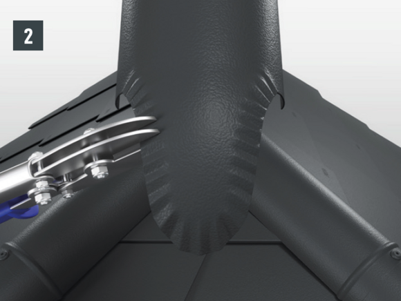 The connection from the PREFA jet fan to the collar must be sealed with an end and carried out in such a way that no rainwater from the main roof area gets into the jet fan.
