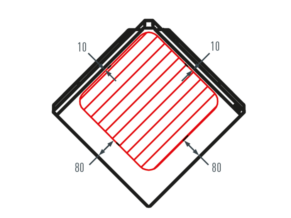 When installing roof accessory products, pay attention to the permissible installation area on the rhomboid roof tiles 44 × 44. The figure below shows the installation area for accessory products on bases. Different installation areas may be defined for other accessory products.
