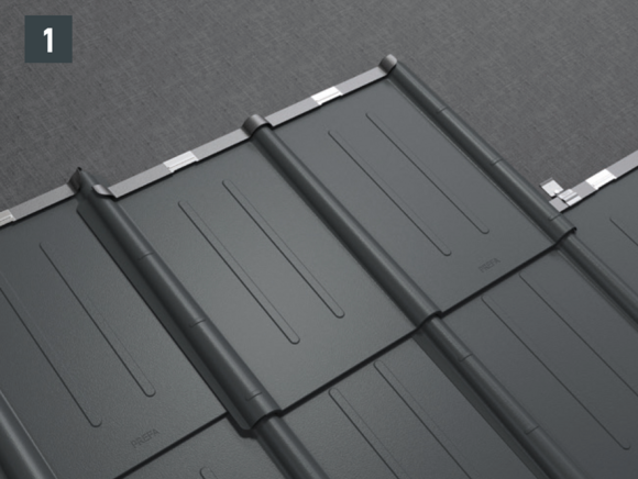 Cover roof tiles in horizontal rows (Fig. 1).