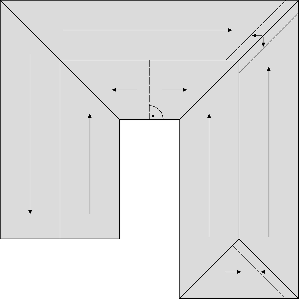 The roof tiles make laying in both directions possible. If the circumstances allow it (e.g. with pitched roofs and pent roofs), coverage towards the weather side is preferred.