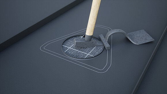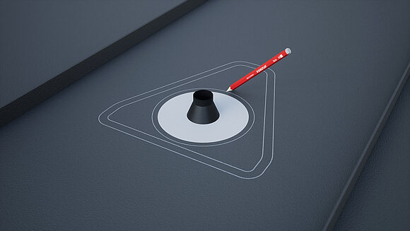 Position the solar roof conduit and mark the outline. Then mark the adhesive area (25 mm) and the cut-out of the pipe collar. Cut out and flare the circular area.