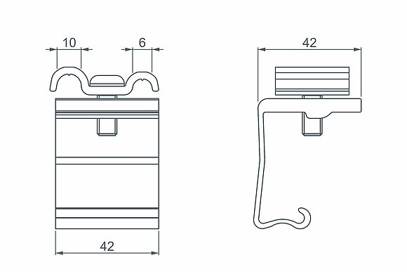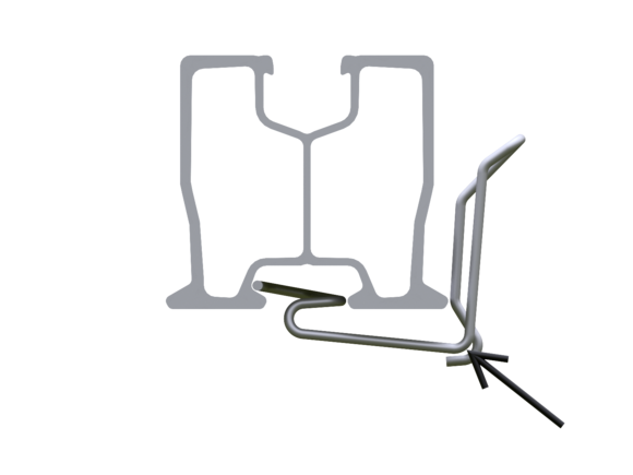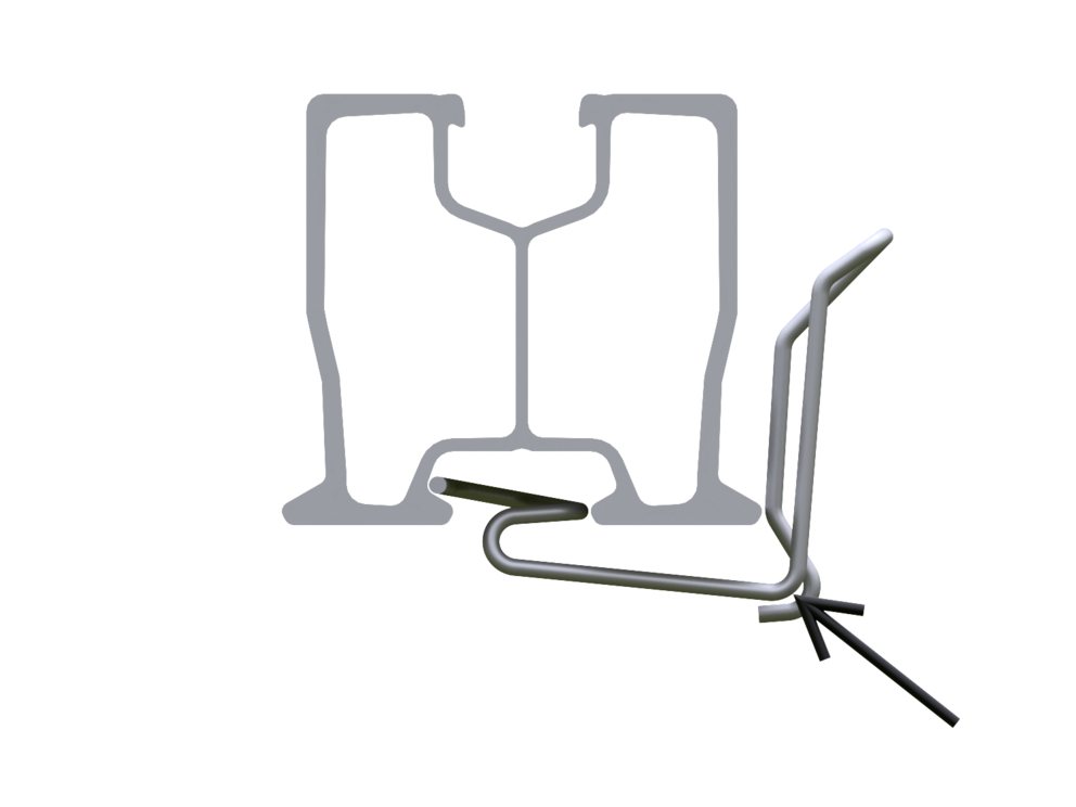 The cable clip is inserted diagonally from below into the groove of the rail and clipped into the rail by applying pressure diagonally upwards.