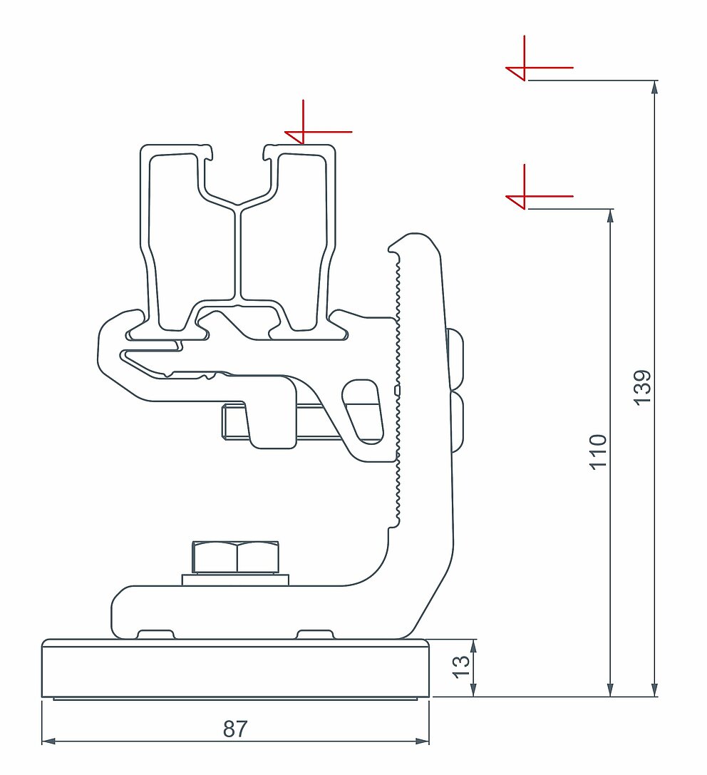 Mark the centre of the rafter. The foot part must be positioned with a minimum spacing of 10 mm to the fold above and 80 mm to the fold below (see sketches above).