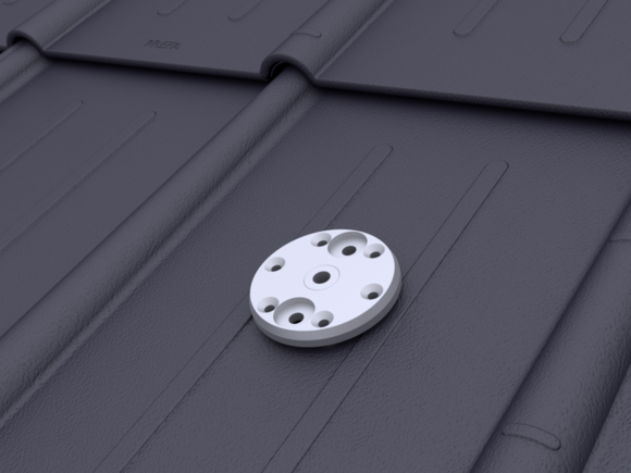 The mount should not be attached on a seam or crest of the PREFA roof covering. If the position of the rafter does not coincide with the installation area, a base plate must be used.