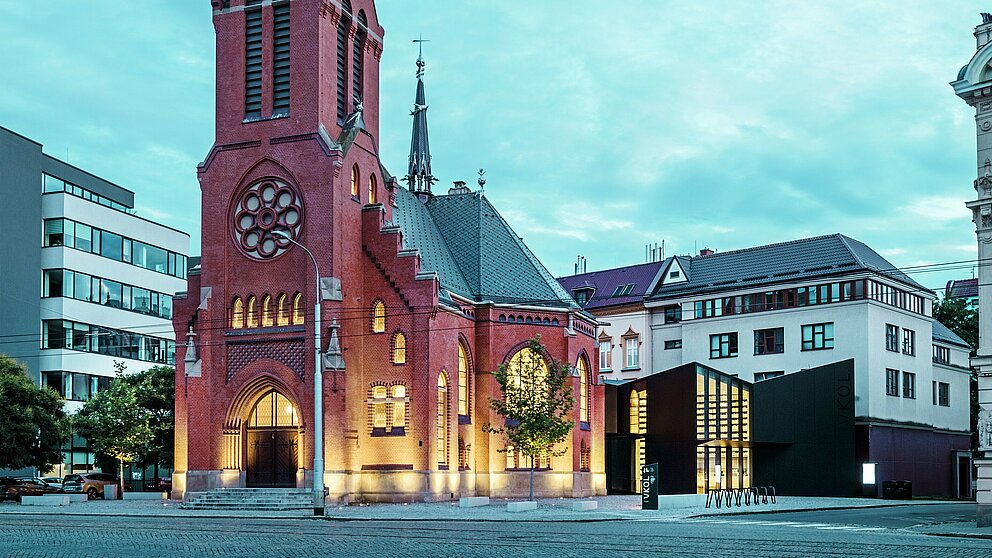 Anyone walking through Olomouc immediately senses the special atmosphere between the historic old town, the Red Church and the research library. It was here that a new building was constructed in 2023, impressively connecting the two buildings. Atelier-r, s.r.o complemented the ensemble with a structure that respects the historic surroundings while introducing a contemporary form. Architect Miroslav Pospíšil describes the design as a work between the past and the present, in which the church was to retain its external appearance and the new building was to have a calm, independent expression.